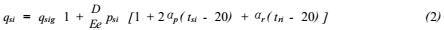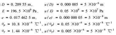 式中:qsi*i校准点在标准体积管处的实际流量,L/min;qsig*i校准点在标准体积管处名义流量的平均值,L/min;D标准体积管的内径,mm;E标准体积管材料的弹性模量,Pa;e标准体积管的壁厚,mm;psi*i校准点在标准体积管处的流体表压力的平均值,Pa;αp标准体积管的线膨胀数,℃^-1;tsi*i校准点在标准体积管处的流体温度的平均值,℃;αr体积管测量杆的线膨胀系数,℃^-1;tri*i校准点在体积管测量杆处的温度,℃。