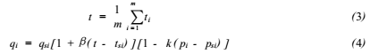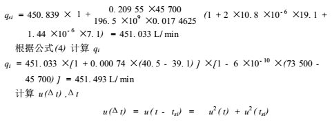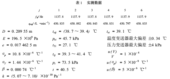式中:t所有校准点在流量计处流体温度的平均值,℃;m被校流量计的流量校准点数目;ti*i校准点在流量计处的流体温度的平均值,℃;qi*i校准点被校流量计的实际流量,L/min;β流体的体积膨胀系数,℃^-1;k流体的压缩系数,Pa^-1;pi*i校准点在流量计处的流体表压力的平均值,Pa。