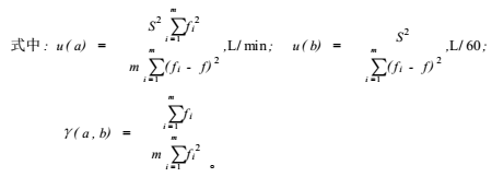 式中:q对应于f在拟合直线上的流量值,L/min;f流量计输出频率,Hz;a= q-bf,