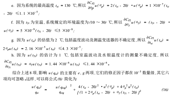 这样,已修正的标准体积管流量的合成相对标准不确定度可用公式(8)计算