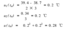 u(t)与u(tsi)的计算方法相似,它也包含测温变送器的测量不确定度和被校流量计处红油温度的变化所引起的测量不确定度