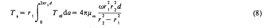 式中,d为轴深;ω为涡轮旋转角速度;a是高度为d、半径为r1的圆柱面面积。
