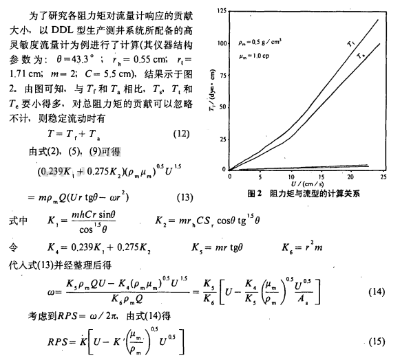 1)影响涡轮流量计叶轮响应的阻力矩主要是叶片摩擦阻力矩和轴承外表面阻力矩;影响涡轮流量计测量值得主要因素是流速大小和动力粘度分布。
