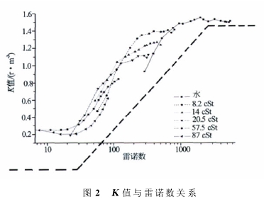 (5)用于测量不同黏性流体的涡轮流量计,只进行一次在高黏度条件下来流雷诺数不同的标定,即可近似得到该涡轮流量计K值与雷诺数的关系,并反推出该涡轮对不同黏性流体的响应曲线。