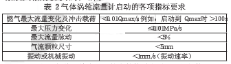 在启动气体涡轮流量计时,应保持相对较慢的加压速度,如果过快的加压将有可能损坏气体涡轮的叶片,气体涡轮流量计启动的各项指标要求如表2所示。