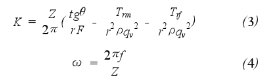 当流量大于始动流量以后,随着流量的增加,涡轮旋转角速度也在增大,流体产生的阻力矩Trf将成为影响流量计精度的主要因素。所以,我们假定Trm= 0,式(3)变为: