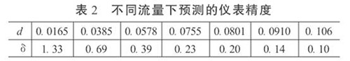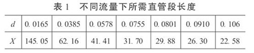 3.直管段长度和高精度汽油流量计精度的初步预测在工程设计中,根据流体性质、流量和雷诺数确定α和d值。这样,按照式(5)就可以依不同的流量计精度要求,对直管段长度进行初步预测,或确定直管段长度后,对流量计的精度做初步预测。当δ= 0.2%时,不同流量下所需直管段长度见表1。
