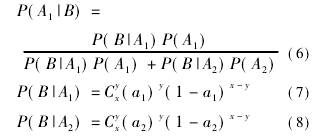 用C事件代替式(6)~(8)中的B事件,计算可得C发生的情况下A1的可信度为7.08%,即后验概率为P(A1|C)=7.08%,P(A2|C)=92.92%。