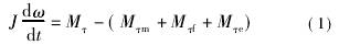 式(1)中通常电磁反作用力矩Mτe比较小,可以忽略。正常工作条件下,可认为管道内流量不**间变化,即叶轮以稳定的角速度旋转。即存在