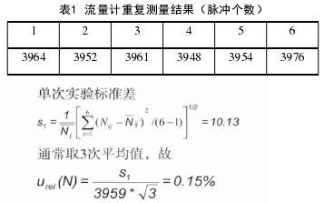 输入量Ni的不确定度来源主要是流量计测量的不重复性,采用A类评定方法评定。