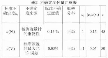 输入量Vi相对不确定度Urei(Vi)不确定度主要来源于气体流量标准装置的测量误差,其不确定度采用B类方法评定。