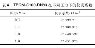 计算所得的不同压力下仪表系数如表3和表4所示。
