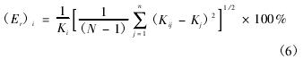 式中:(Er)i为不同工作压力下流量计仪表系数的重复性,%;Ki为不同工作压力下流量计仪表系数的平均系数,1/m3;Kij为*i种工作压力下流量计的仪表系数,1/m3;n为不同工作压力的个数。