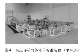 高压环道气体流量标准装置,如图4所示,该装置可在实际工作的压力状态下检测流量计的性能,主要部件都来自德国,是国内*台闭环式高压气体装置。其流量范围为1~2500m3/h,检测口径为DN20~DN250,工作压力范围为0.1~2.0MPa,不确定度为0.33%。目前,我司的高压环道装置已将量传到欧洲VSL国际标准实验室,也正在申请国内取证和建标,并且正在和浙江省院以及中国计量院做实验对比工作。采用该套装置进行压力为0.1MPa、0.8MPa和2.0MPa的检定。
