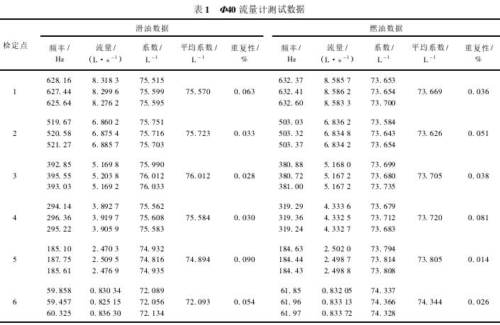 对单个流量计的测试主要依据JJG1037—2008《高压型涡轮流量计厂家检定规程》。其中主要参数及计算方法如下: