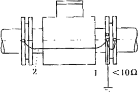 (2)传感器安装在塑料管道或内壁有绝缘涂层、衬里、漆层的金属管道上的接地