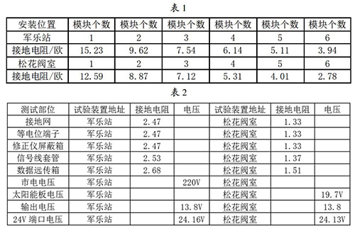 接地网的安装与连接:接地网是整个液体涡轮计量表防雷试验比较关键的一个内容,能不能准确的论证试验的有效性,必须保证接地网达到标准的接地电阻,通过对实地地电阻率的测试,初步选择6个接地??槁裆璨⑴溆媒底杓潦褂茫甙沧氨卟馐灾钡酱锏奖曜贾岛蟛乓氲鹊缥幌?。在军乐站和松花阀室安装??椴⒉馐允菁?。