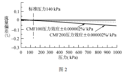 从图2 中, 我们可以看出压力对测量准确度的影响:当工艺压力增大, 会使流量计产生一个负向偏差, 表现为流量显示值比实际值偏小;当压力减小时, 会使流量计产生一个正向偏差, 表现为流量显示值比实际值偏大。