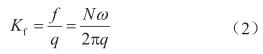 式中q表示体积流量,m3/s;ν表示介质的运动黏度,m2/s;雷诺数Re=4q/(πdν);d表示流量计口径,m;ρ表示介质的密度,kg/m3;C'D、C'B0、C'B1和C'B2分别表示4个待定系数,在某个流量点下标定出的仪表系数(Kf,表示单位体积流体通过流量计时,流量计输出的脉冲数,1/m3)和转子叶片频率(f,s-1)的关系为: