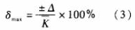 在QQmax,即在测量范围之外误差将超过δmax。这就是说虽然涡轮流量传感器具有很好的重复性,但是由于电脉冲信号频率F与体积流量Q之间是非线性的,按照常规的平均仪表系数`K的计算方法,对于一定的误差限士A,由于非线性误差的存在使得涡轮流量传感器的工作范围只能限定在Qmin~Qmax之内。
