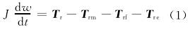 涡轮在转动时所受的力矩大致可分:流体对涡轮的推动力矩Tr,机械摩擦力矩Trm,流体对涡轮产生的流动阻力矩Trf和电磁阻力矩Tre。涡轮运动方程可以表示为