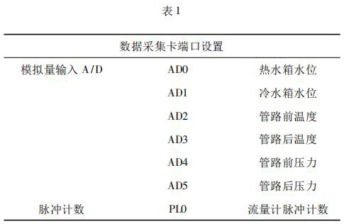 数据采集系统由工控机、消防水流量计以及数据采集卡组成。 4000 次冷热冲击试验要求在在*大流量 qs 条件下运行,对流量数据的采集用到消防水流量计及数据采集卡。消防水流量计采集管路流量,数据采集卡将消防水流量计采集到的数据反馈给工控机系统。过程中,试验管路水温以及水箱水位的采集控制也是通过数据采集卡反馈给系统控制。试验过程用到的数据采集卡采用研华生产的PCI - 1711。PCI - 1711 是一款多功能 PCI 总线数据采集卡,具有 16 路单端模拟量输入功能、2 路 12位模拟量输出功能、16 路数字输入和 16 路数字输出功能、计数器功能等。为保证冷热冲击试验结果的准确性,严要求严格控制管路流量以及管路压力。因此,管路设置前后管路温度、冷热水箱水位以及管路压力的采集,管路流量根据消防水流量计脉冲计数进行采集,其数据采集卡端口设置如表 1 所示。