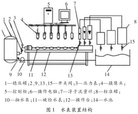 水表检定装置是全自动水表校验装置,水表检定装置以计算机为核心,它在需要检定水表上方安装摄像装置,连接到图像采集和高速计算器中,计算器可以识别水表指针的流量数值,自动控制水流量,实现水表检验的全自动化,针对水表检定装置存在的问题提出解决方案,减少水表检定装置在使用过程中出现质量问题,让水表检定装置可以不断完善。