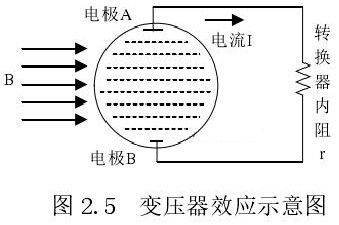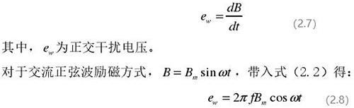 从上图 2.5 中可以观察到两个电*、励磁线圈、转换器内阻之间形成了一个闭合回路,将此回路称之为初级绕组,从理论上进行分析,磁力线 B 应当平行于励磁线圈所产生的磁感应线,但在实际的应用过程中由于工艺差异,因此无法达到理想状态,会产生磁力线穿过励磁线圈磁感应线的情况,此时将会产生相应的感应电动势,将此部分感应电动势称为变压器效应。此效应同样满足于楞次定律,利用楞次定律进行计算可得如下电动势: