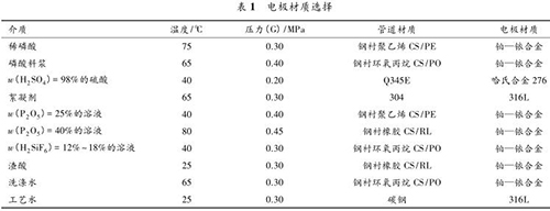 国内某 300 kt/a 磷酸装置中,含有不同温度、不同压力、不同浓度的多种酸液,包括:稀磷酸、浓硫酸、磷酸料浆、絮凝剂、P 2 O 5 溶液、H 2 SiF 6 溶液、渣酸、洗涤水、酸性循环水、工艺水等。如此复杂的工艺介质对流量计的选型要求很高,酸液的配比、浓度、温度、杂质、溶解气体以及流速等都会影响接液材质的耐腐蚀性。