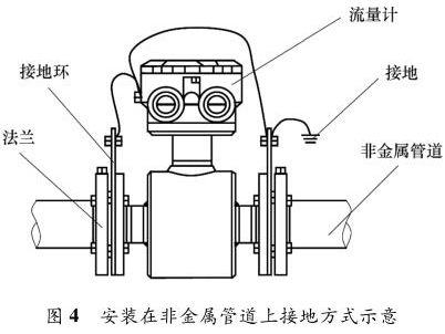 纯化水流量表安装在金属管道上,安装时将金属管道与纯化水流量表相连接,接地线再接入接地网,如图 3 所示。
