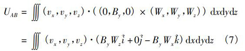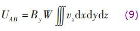若磁感应强度在传感器有效工作区间内分布均匀,则磁感应强度B=By,Bx=Bz=0,式(6)可以化为