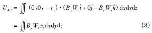 式中V为注水流量计传感器测量空间;W→为权函数。在直角坐标系(x,y,z)中,式(5)可以转换为