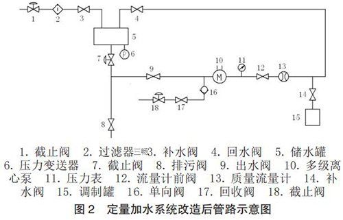 根据设计思路,对定量加水系统的管路进行了改造设计,改造后管路示意图如图 2 所示。