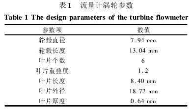 1970年,Thompson和Grey基于叶栅理论和不可压缩势流提出了较为系统的计算柴油计量表响应的理论模型(以下简称TG模型)。该模型可以将速度入口信息以及柴油计量表各部件的几何和运动参数均纳入考虑,因而被此后的研究广泛采用。流量测量设备的内流场对其响应有着重要影响,目前部分研究采用数值模拟手段对其进行计算进而分析仪表的响应情况。对于涡轮内流场的实际流动情况Xu采用了激光多普勒(LDA)技术对口径100mm的柴油计量表轮毂与管壁间的12个不同位置的速度进行了测量并代入理论模型进行计算,理论计算结果与实验结果比较吻合。