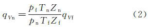式中:qVf--工况条件下的体积流量,m3/h;qVn--标准状态体积流量,m3/h;pf,pn--工作状态、标准状态流体绝对静压,MPa,pn=0.101325MPa;Tf,Tn--工况条件下、标准状态流体热力学温度,K,Tn=293.15K;Zf,Zn--工况条件下、标准状态气体压缩系数。