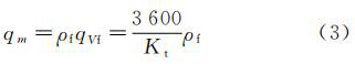 式中:qVf--旋涡发生体出口的工况体积流量,m3/h;f--旋涡频率,P/s;Kt--工作状态下流量系数,1/m3。