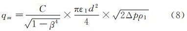 式中:C--流出系数;β--直径比,β=d/D;D--管道内径,m;d--工作条件下节流件的开孔直径,m;ε1--节流件正端取压口平面上的可膨胀性系数;ρ1--节流件正端取压口平面上的流体密度,kg/m3。