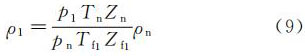对于组分稳定的气体,可用式(9)计算ρ1: