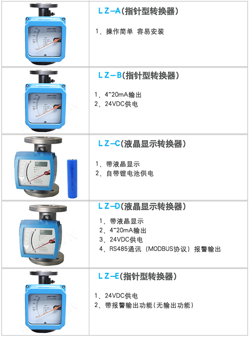 LZ 系列金属管浮子流量计结构简单、工作可靠、准确度高、适用范围广。与玻璃转子流量计相比较能耐较高的压力。LZ 系列流量计具有就地指示、电远传、限位开关报警、耐腐蚀、夹套型、阻尼型和防爆等品种。广泛应用于国防、化工、石油、冶金、电力、环保、医药和轻工等部门的液体、气体流量的测量与自动控制。