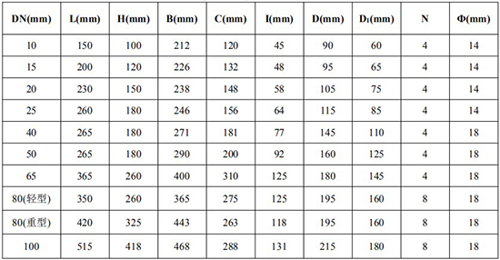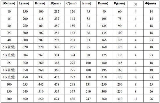 *DN10/DN50(轻型)/DN65/DN80(轻型)法兰尺寸为 1.6MPa 标准;其余口径为 6.4MPa 标准;