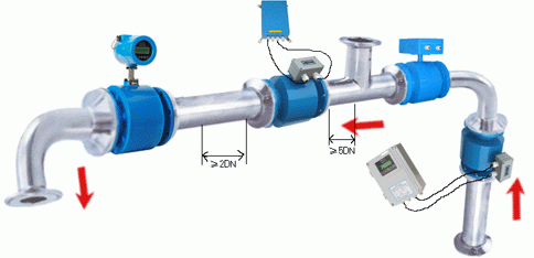 5. 流量计传感器上游也应该有一定的直管段,一般在5D~10D。