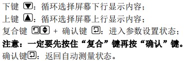 1.自动测量状态时键功能:
