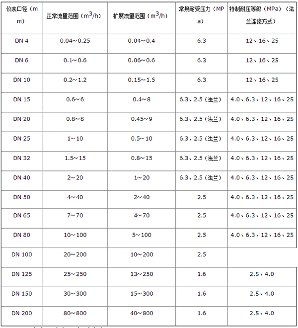 2、仪表口径(mm)及连接方式:4、6、10、15、20、25、32、40、50、65、80采用螺纹连接