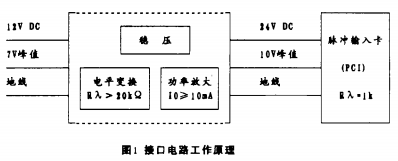 为了满足计算机接口的要求,我们设计并制作了一个电子单元,作为涡街流量计与计算机输入卡之间的接单元,其原理框图如图1所示。