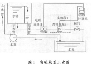 实验是在天津大学天津市过程参数检测与控制重点实验室的水流量标准装置上完成的,实验管径为100mm,图1为实验装置示意图。